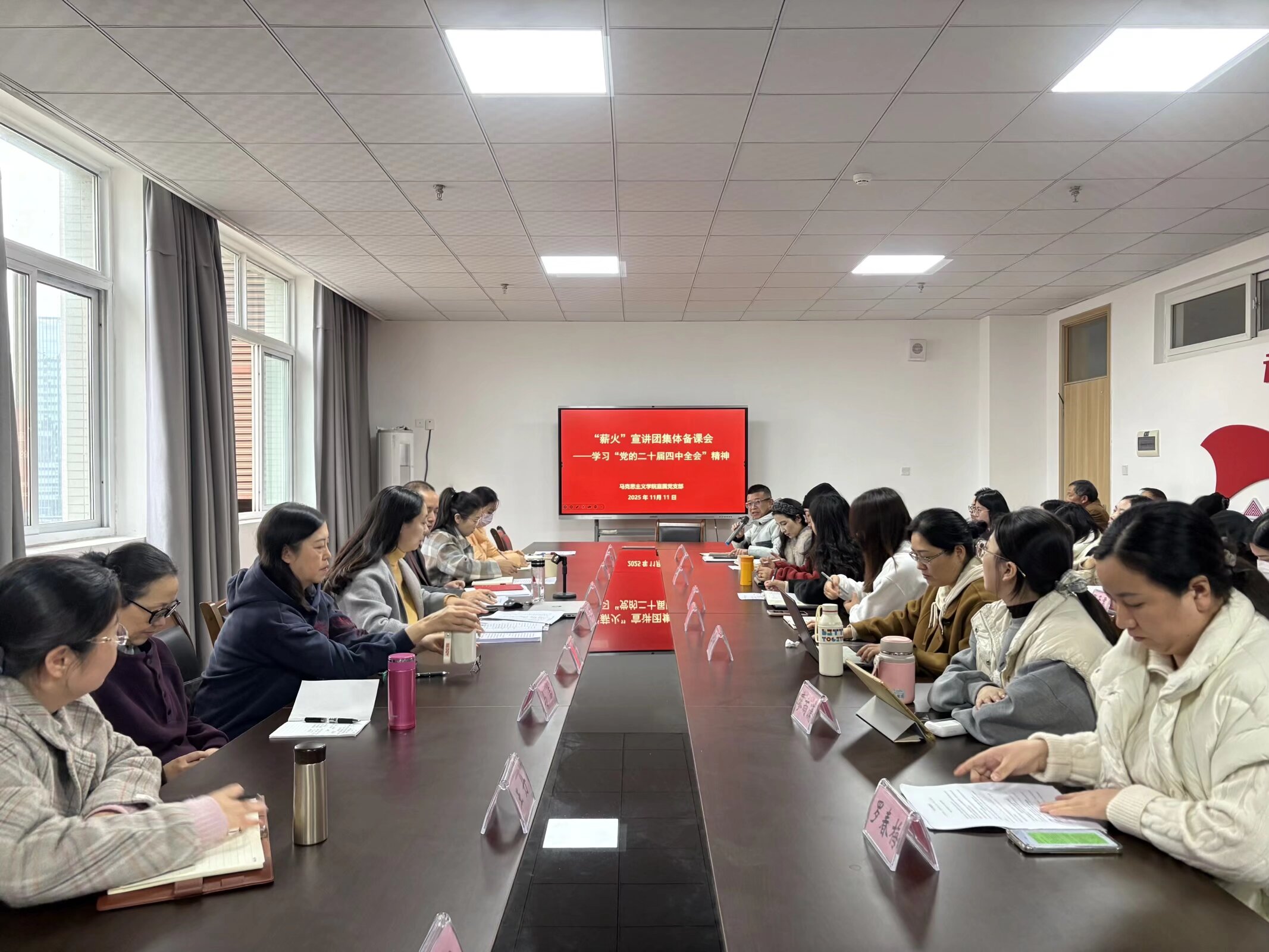 目前,“薪火”宣讲团已组建了一支由14名骨干教师构成的宣讲分队。后续,该分队计划着力面向全校各党总支、党支部,“一站式”员工社区等师生群体开展宣讲活动。“薪火”宣讲团将以“走在前、作表率”的政治自觉,持续深入学习,带着此次集体备课会的成果,推动党的二十届四中全会精神在基层广泛传播、落地生根。