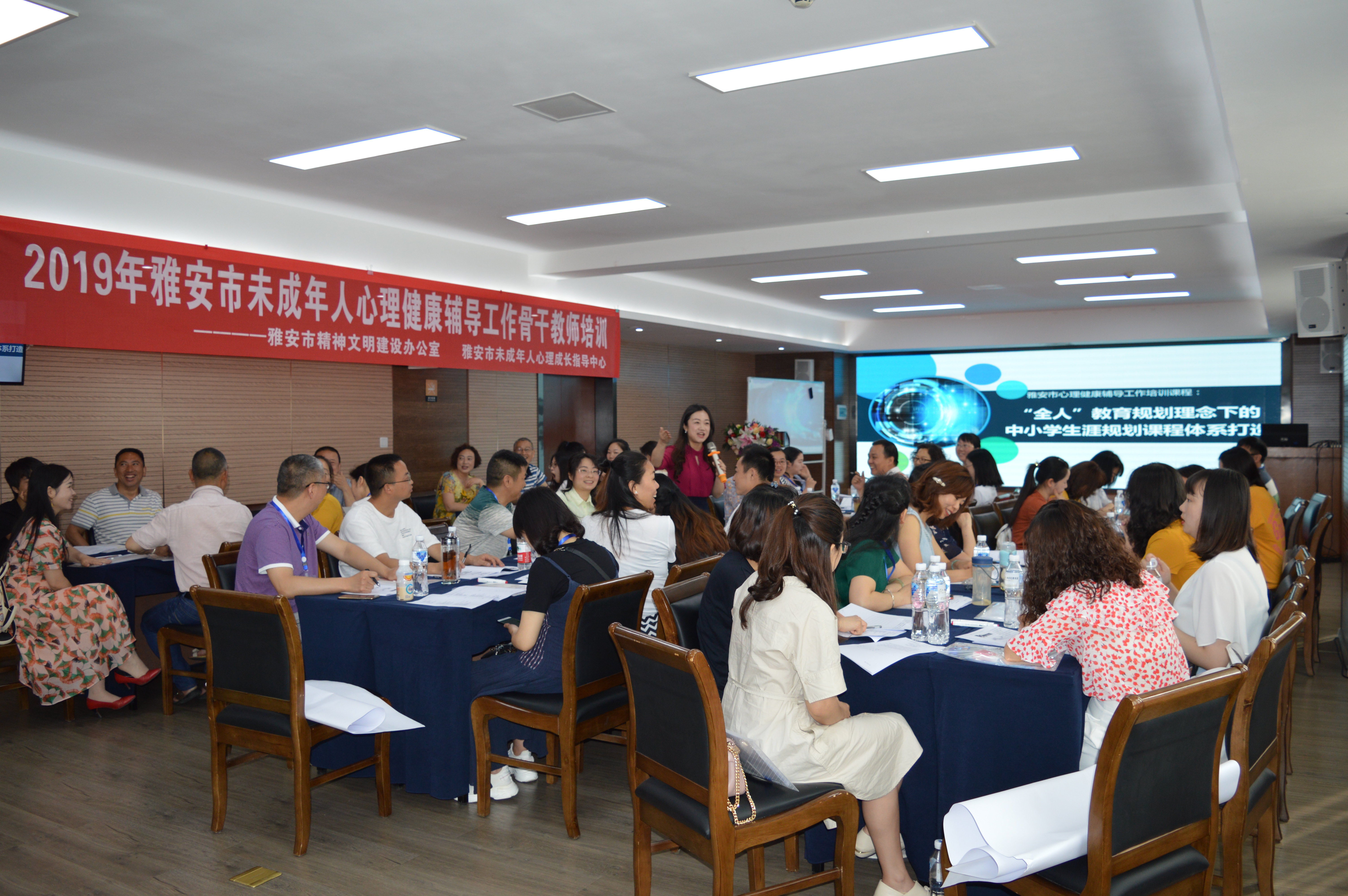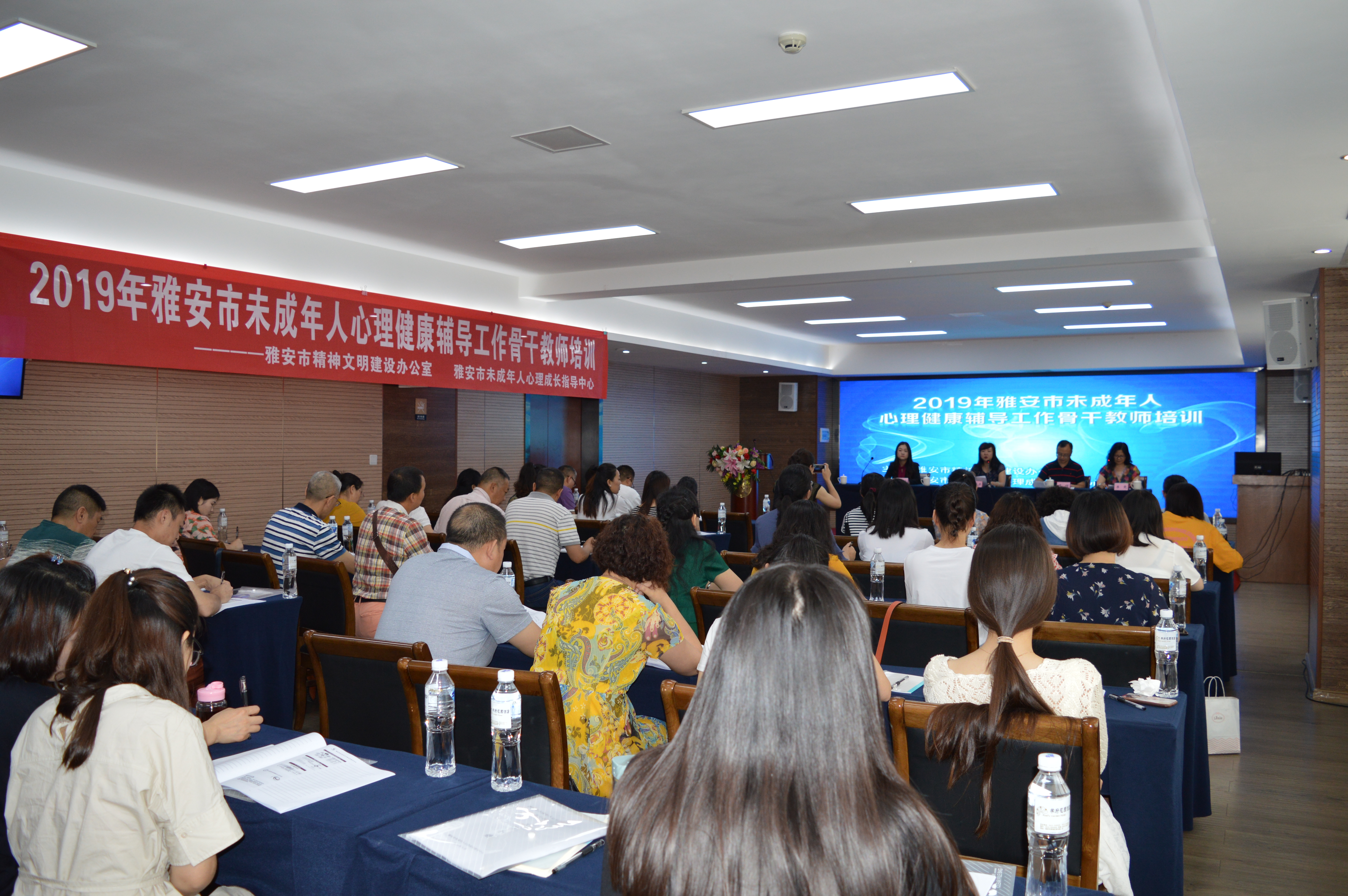 2019年6月4日-6月5日,由雅安市精神文明建设办公室主办,雅安市未成年人心理成长指导中心承办的“2019年雅安市未成年人心理健康辅导工作骨干教师培训”在yl7703永利顺利举行。来自雅安市6县两区负责未成年人心理辅导工作的相关人员以及区县公司负心理教师共45人参加了此次培训。