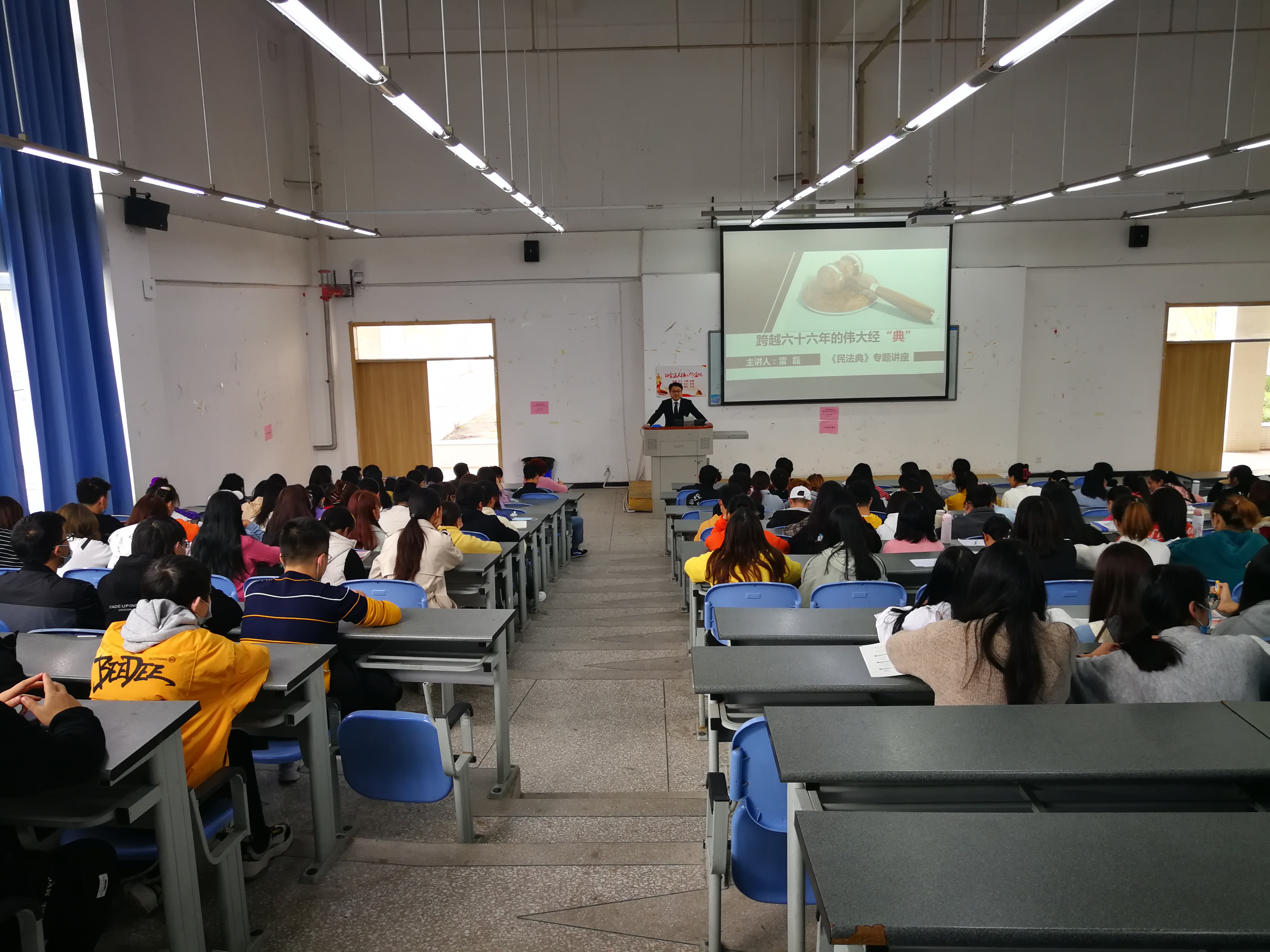 2020年11月10日下午,思政部开展了《形势与政策》课大讲堂的启动仪式,并由雷磊老师进行首场讲座。雷磊老师以《跨越六十六年的伟大经“典”—< 民法典>》为题展开讲解。讲座介绍了《民法典》简介、意义以及立法成果,运用生动鲜活的案例为同学们进行了有关条文分析讲解。讲座进行了100分钟,同学们对《形势与政策》课的改革创新充满期待,认真听讲、积极互动,讲座气氛热烈,为同学们进一步了解《民法典》,增强法治意识提供生动的课堂,也为思政教师团队成长为高水平的理论宣讲团队提供了平台。