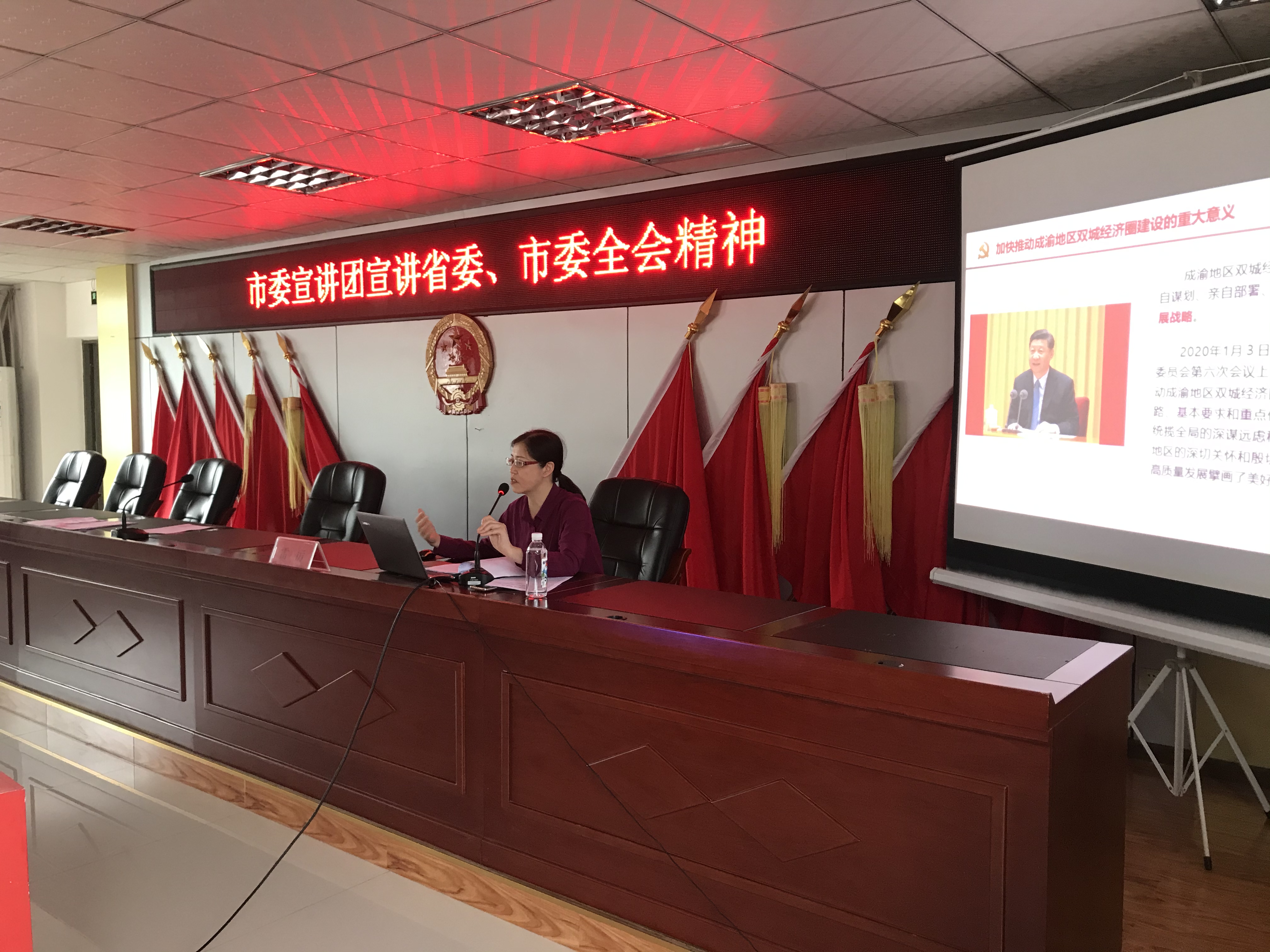 为了深入学习贯彻习近平总书记在中央财经委员会第六次会议上的重要讲话精神,全面准确宣讲省委十一届七次全会、市委四届八次全会精神,引导全市党员干部牢牢把握“两个大局”,全力推进成渝地区双城经济圈建设国家战略实施。思政部教师雷厉、王坤容作为市委宣讲团专家组成员于9月24日分别赴汉源和天全进行了5场宣讲活动。