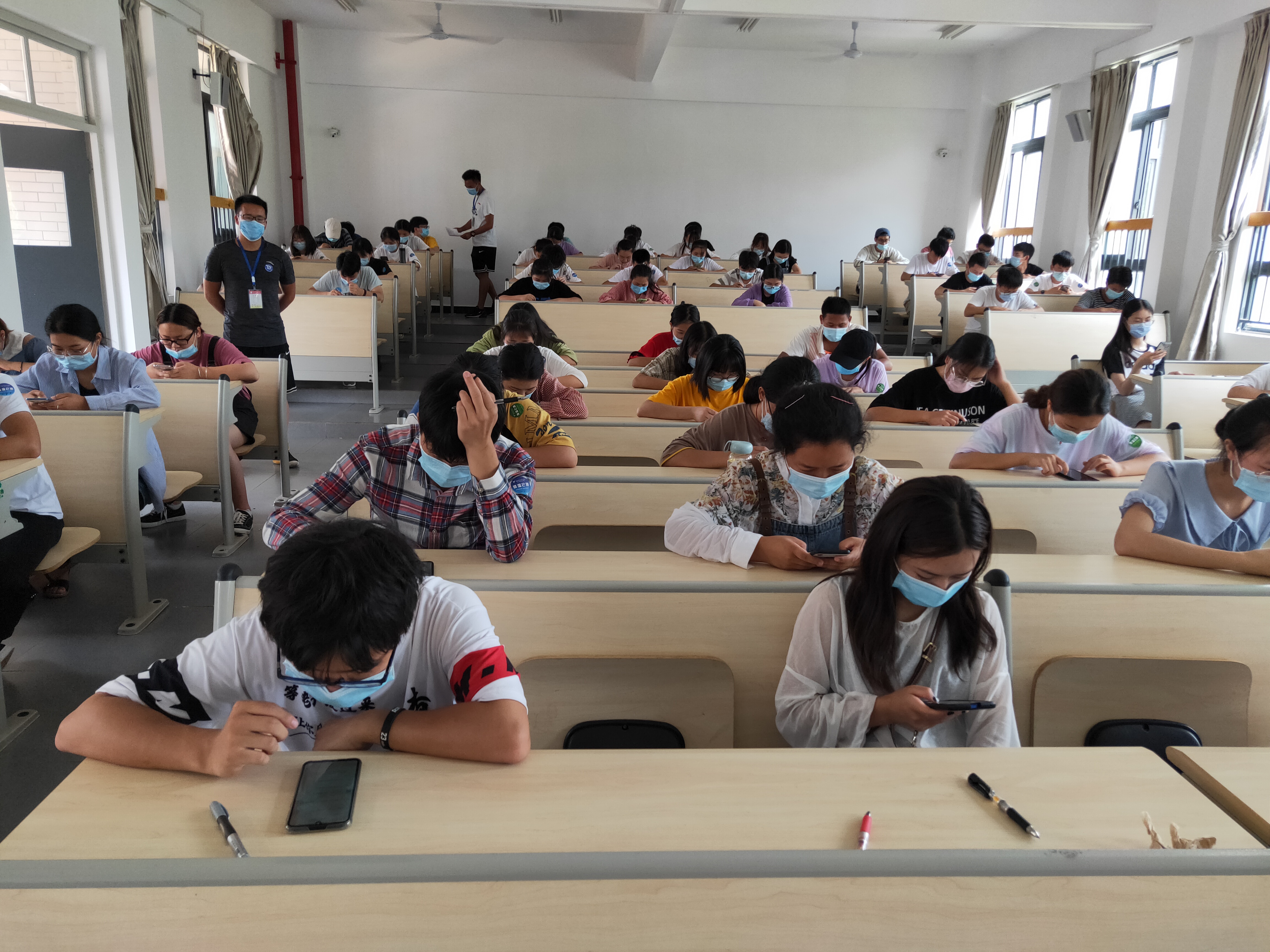 针对疫情对教学带来的影响,思政部充分研判了员工返校后的实际情况和疫情防控要求,6月17日下午在经开区校区对返校的2070名员工实施了线上线下相结合的《毛泽东思想和中国特色社会主义理论体系概论》课期末考查。本次考查分两轮次完成,采取线上与线下、主客观题相结合的方式进行。为了保证考查工作顺利进行,思政部做了充分准备工作。思政部主任李霓负责全面组织和总体把关,教研室拟定考查方案,召开数次教研室视频会议,集思广益制定了完善的考查工作方案和预案,对题型、分值、内容、发布试题的设置、线上班级员工应有的准备工作等逐条明确,落实各项考查工作的细节及责任人,组织思政部各教研室教师承担了考查各项工作,确保了本次考查工作圆满完成。