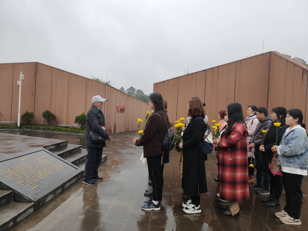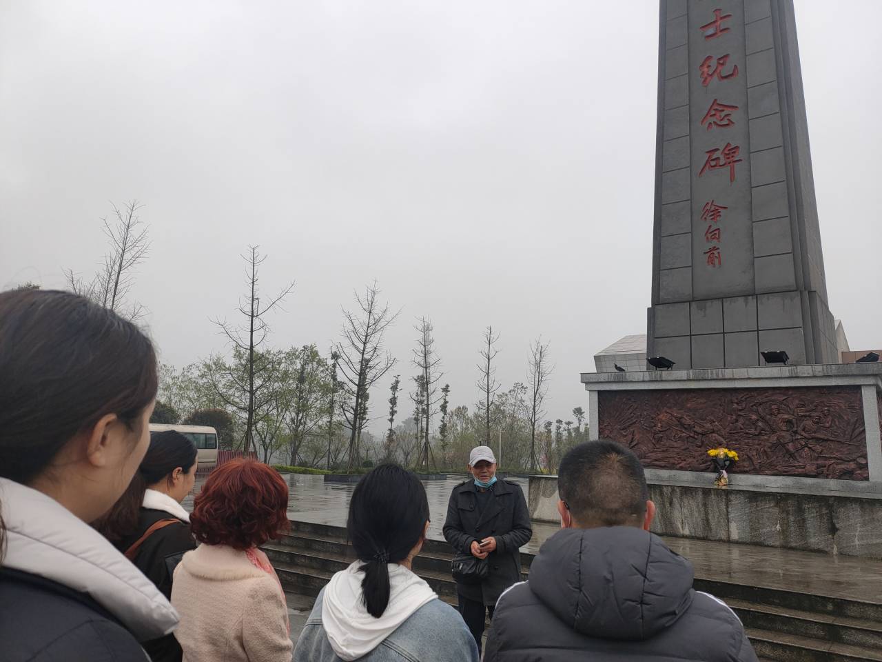 下午14点,思政部全体支部党员、教师来到了名山百丈关遗址,在红军百丈关战役烈士纪念碑前献花,并邀请了名山区优秀教育工作者聂金福老师给大家讲授了百丈关战役的微党课。在聂老师的讲解下,全体党员、教师重温了历史记忆,感慨着中国革命的伟大。随后全体党员、教师来到烈士陵园列队,向红军烈士默哀致敬,并献上菊花寄托哀思。