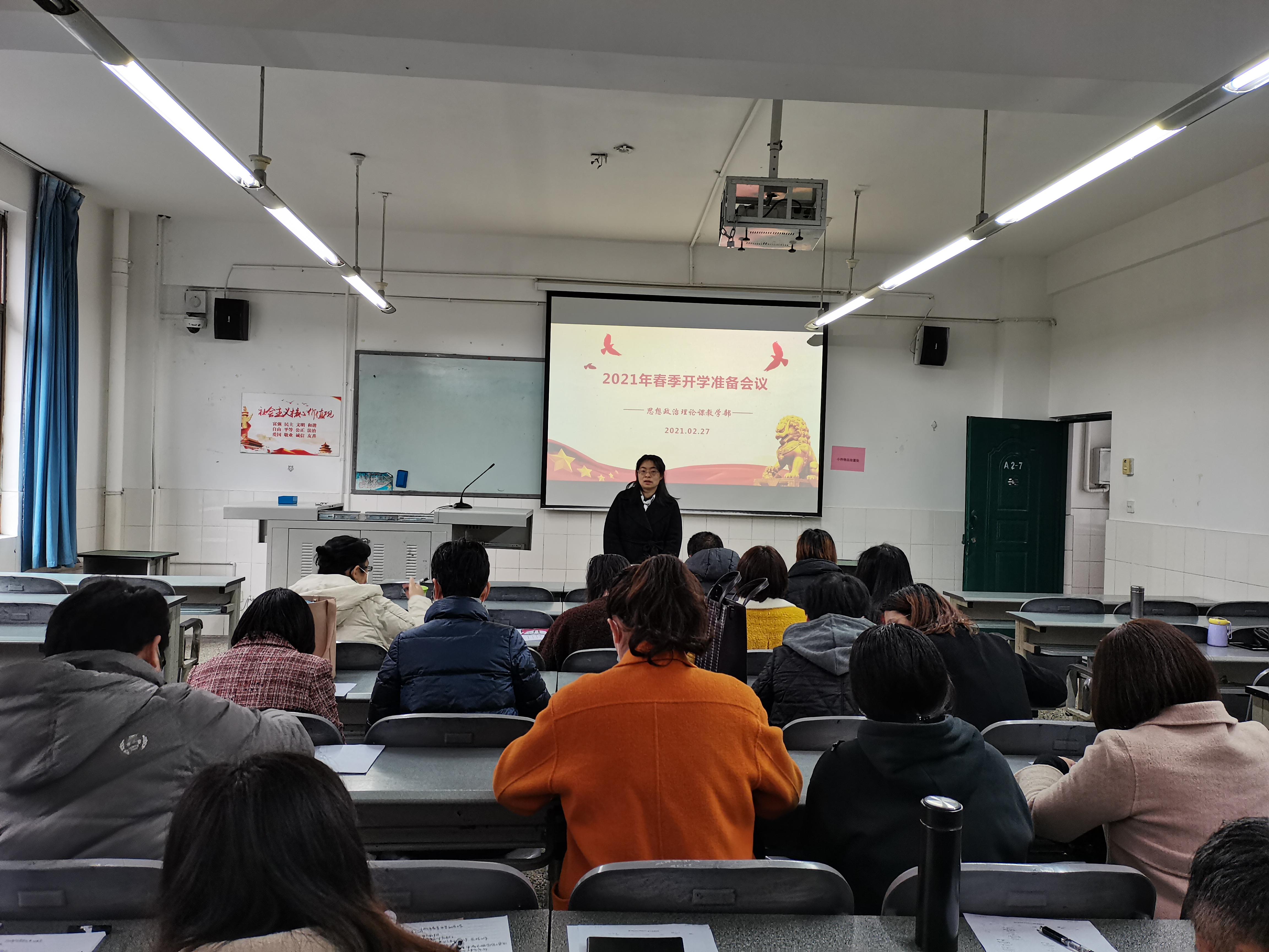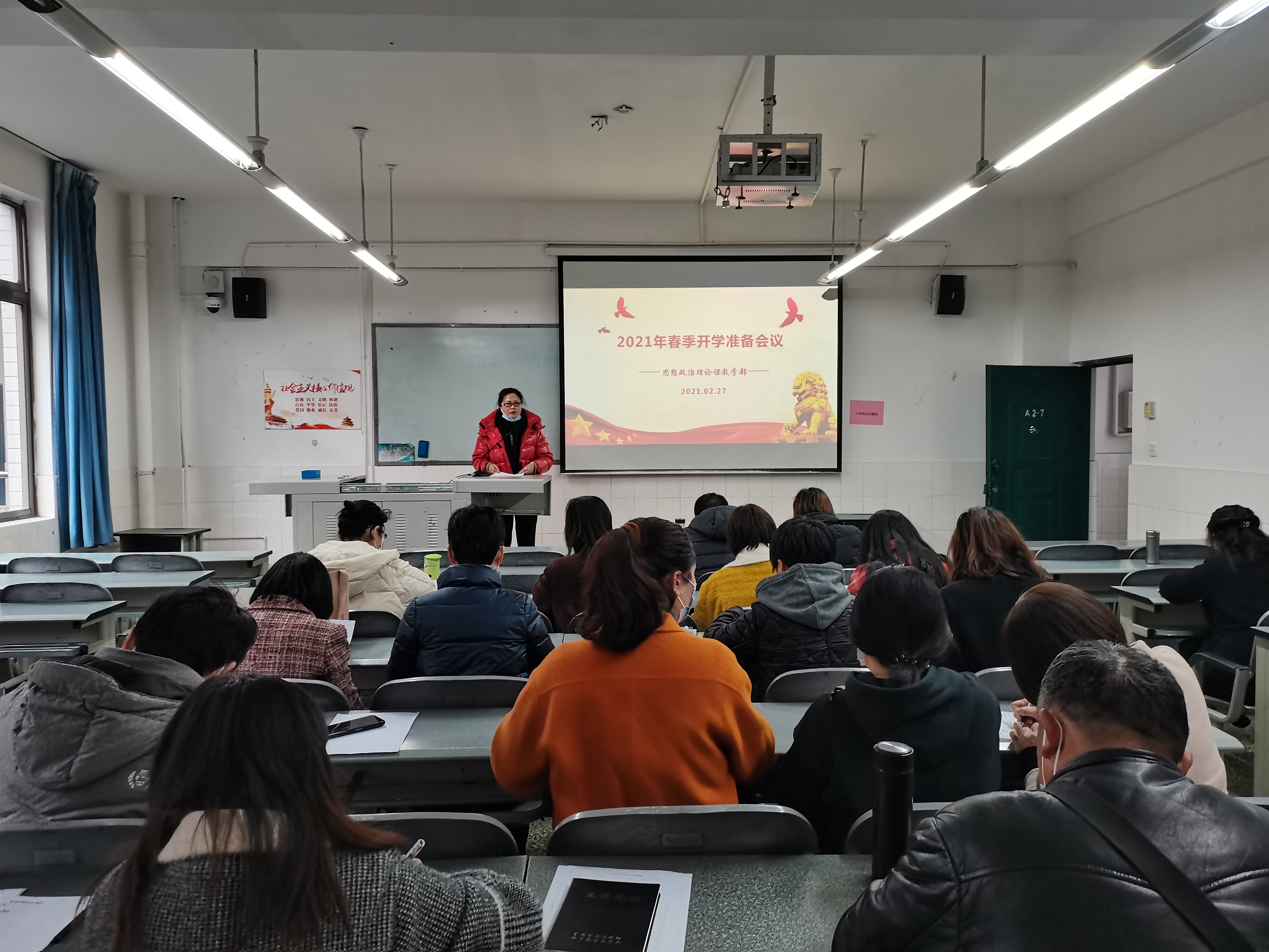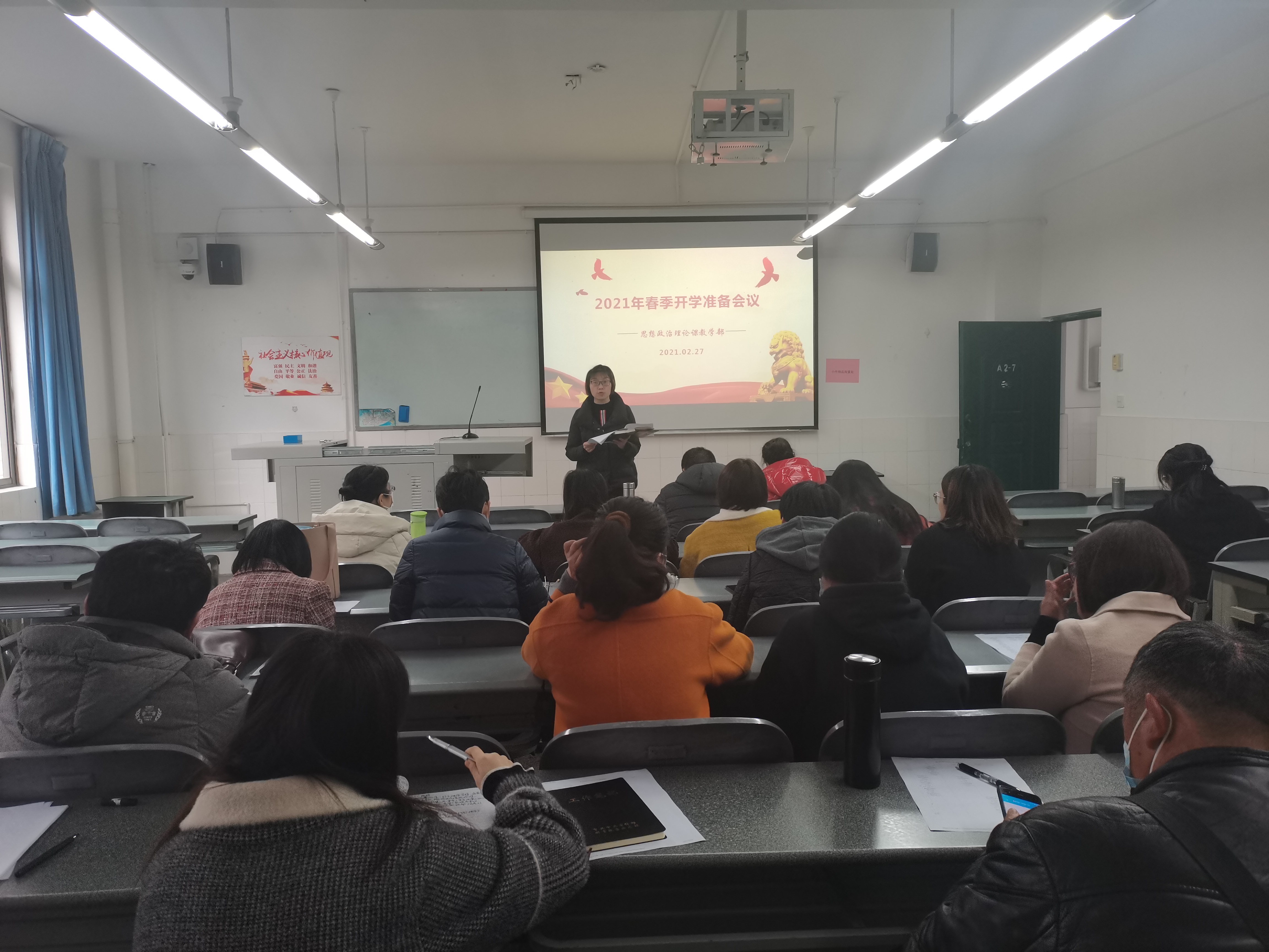 2月27日,思政部于青年路A207召开2021年春季开学动员大会,会议由思政部主任李霓主持,全体教职工参与本次会议。