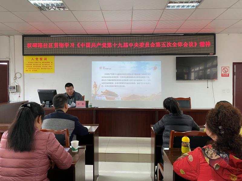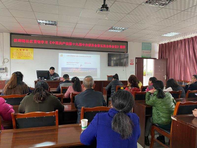 11月10日下午,思政部何衡老师在雨城区青江街道汉碑路社区宣讲党的十九届五中全会精神。汉碑路社区书记、副书记以及全体党员参加了此次讲座。