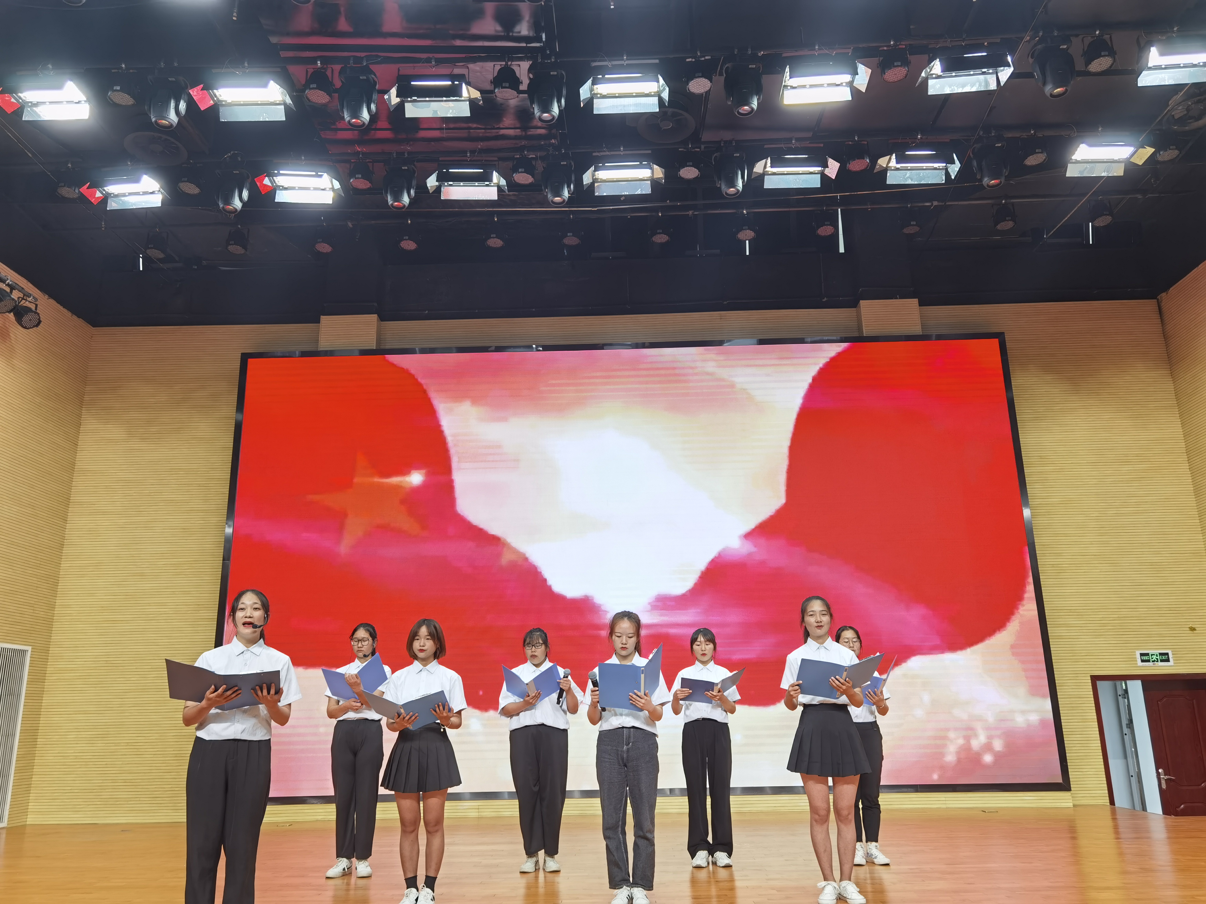 活动展示场面精彩热烈,掌声不断。红歌作品题材广泛、形式多样,伴奏旋律引人入胜;视频作品匠心独运、精巧细致,思维视野令人侧目;朗诵作品别具一格、慷概激昂,真情实感充分流露;小报作品图文并茂、字迹工整,内容丰富寓意深刻。现场同学时而凝神屏气、时而掌声如雷。评委严肃认真、客观公正。展示活动通过腾讯会议进行了同步直播,覆盖了全年级的同学,线上线下气氛热烈。思政部主任李霓和副主任王坤容分别对不同校区的活动展示进行了点评,充分肯定同学们积极参与,认真对待,发挥特长,精心呈现,较好地完成了实践教学的任务。希望同学们把对党和祖国的拳拳之情,转化为实际的行动,用青春和热血去抒写奋斗新征程的华章。两个校区活动安排井然有序,在思政部教师的共同努力下,在同学们的积极参与下,“概论”课实践成果展示活动圆满结束。
