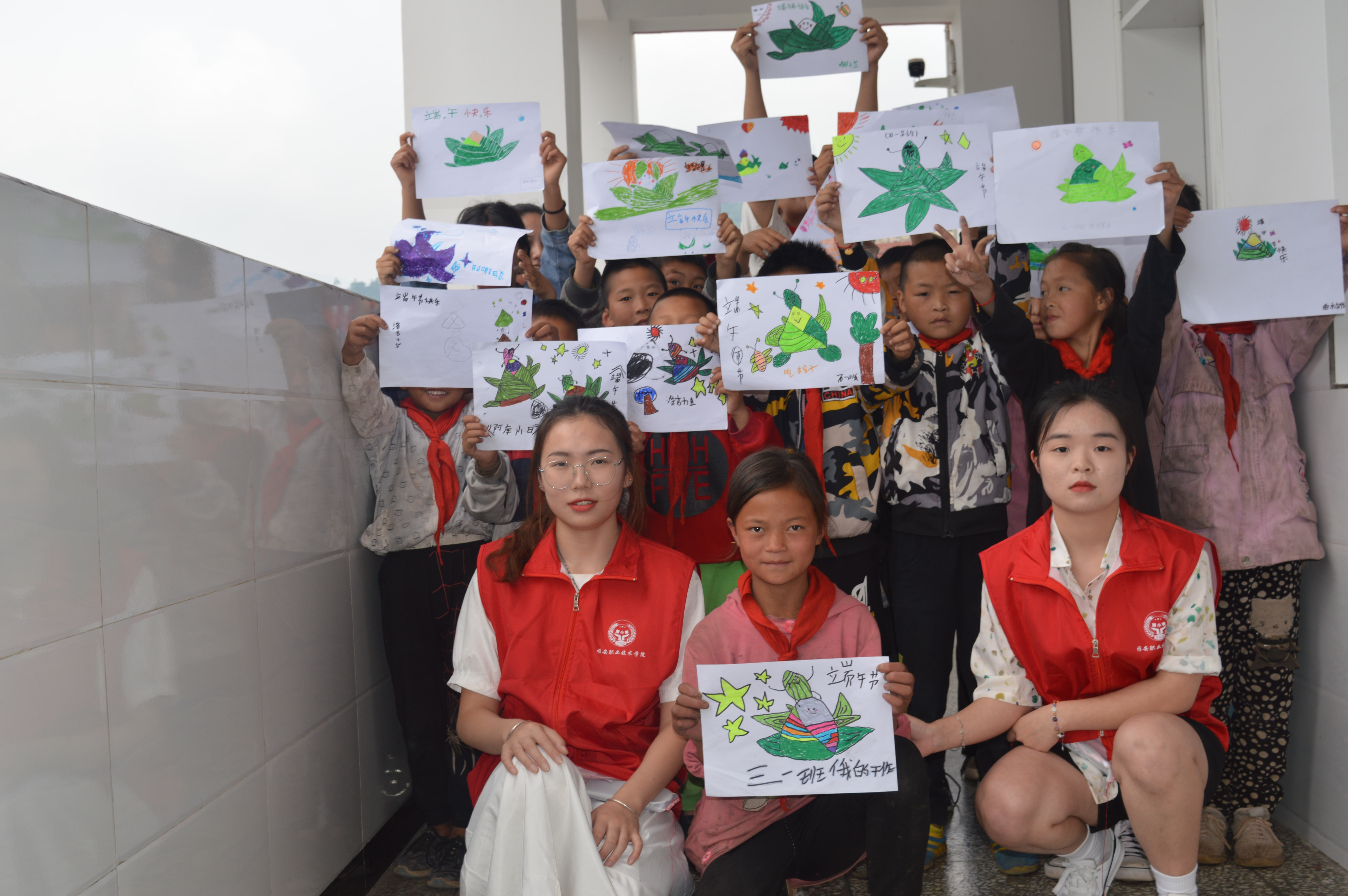 老师们带领志愿者服务队与来自荥经县民建乡中心小学共260名彝族员工一起开展了丰富多彩的活动。大家在活动中运用绘画、手工、唱歌等方式和彝族孩子们进行互动,不仅让孩子们感受幸福的童年,还让孩子们知道如何适当宣泄情绪,教会孩子们怎样增强自信,怎样通过心理暗示激发潜力。