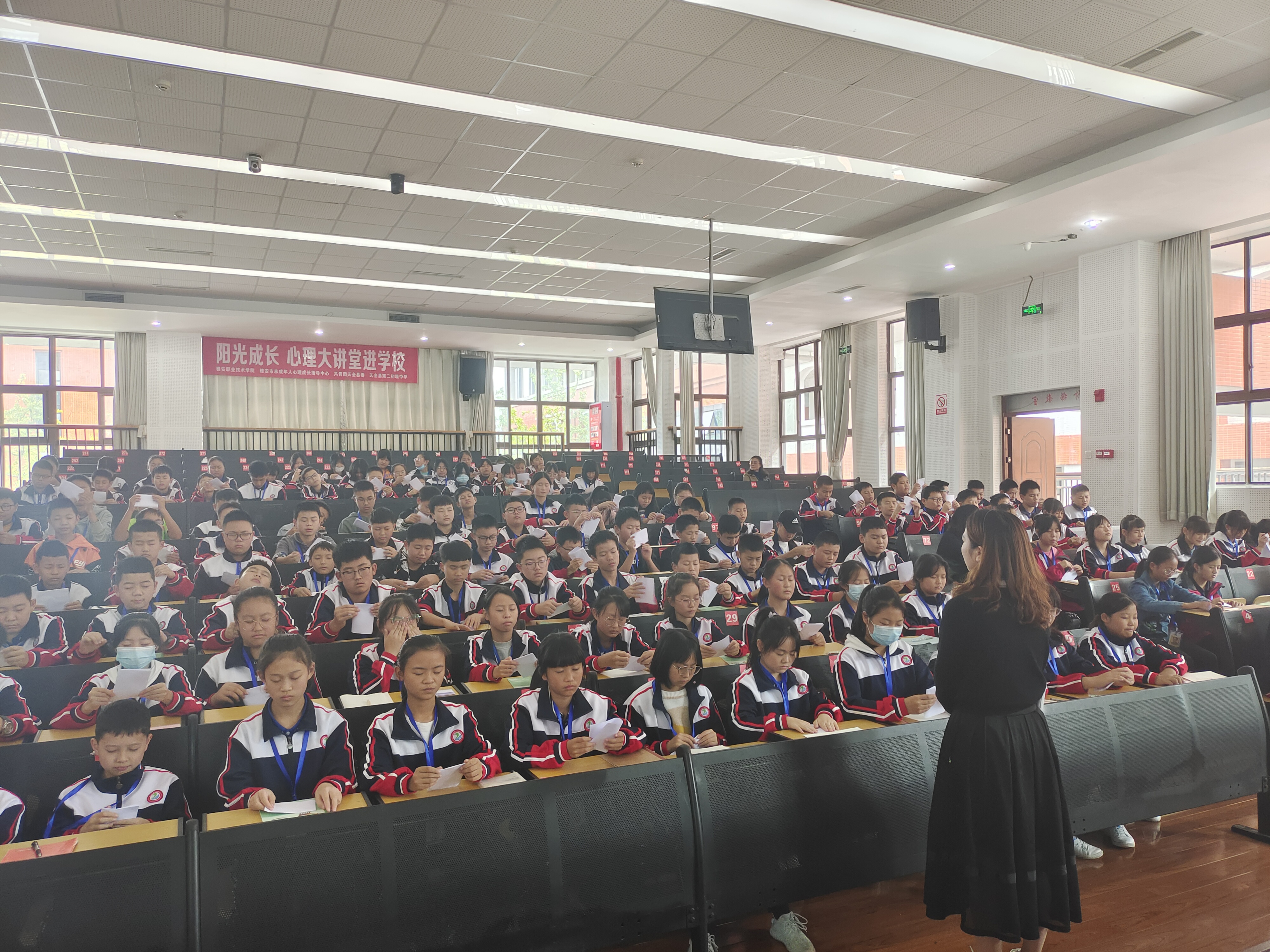 为进一步提高未成年人的心理素质,引导未成年人树立心理健康意识,让更多的孩子认识到保持心理健康的重要性,帮助未成年人缓解心理压力,助力未成年人茁壮成长。10月13日下午,yl7703永利集团心理健康教研室携雅小青志愿者赴天全县第二初级中学开展阳光成长系列主题活动进公司,共计200名初一员工参与。