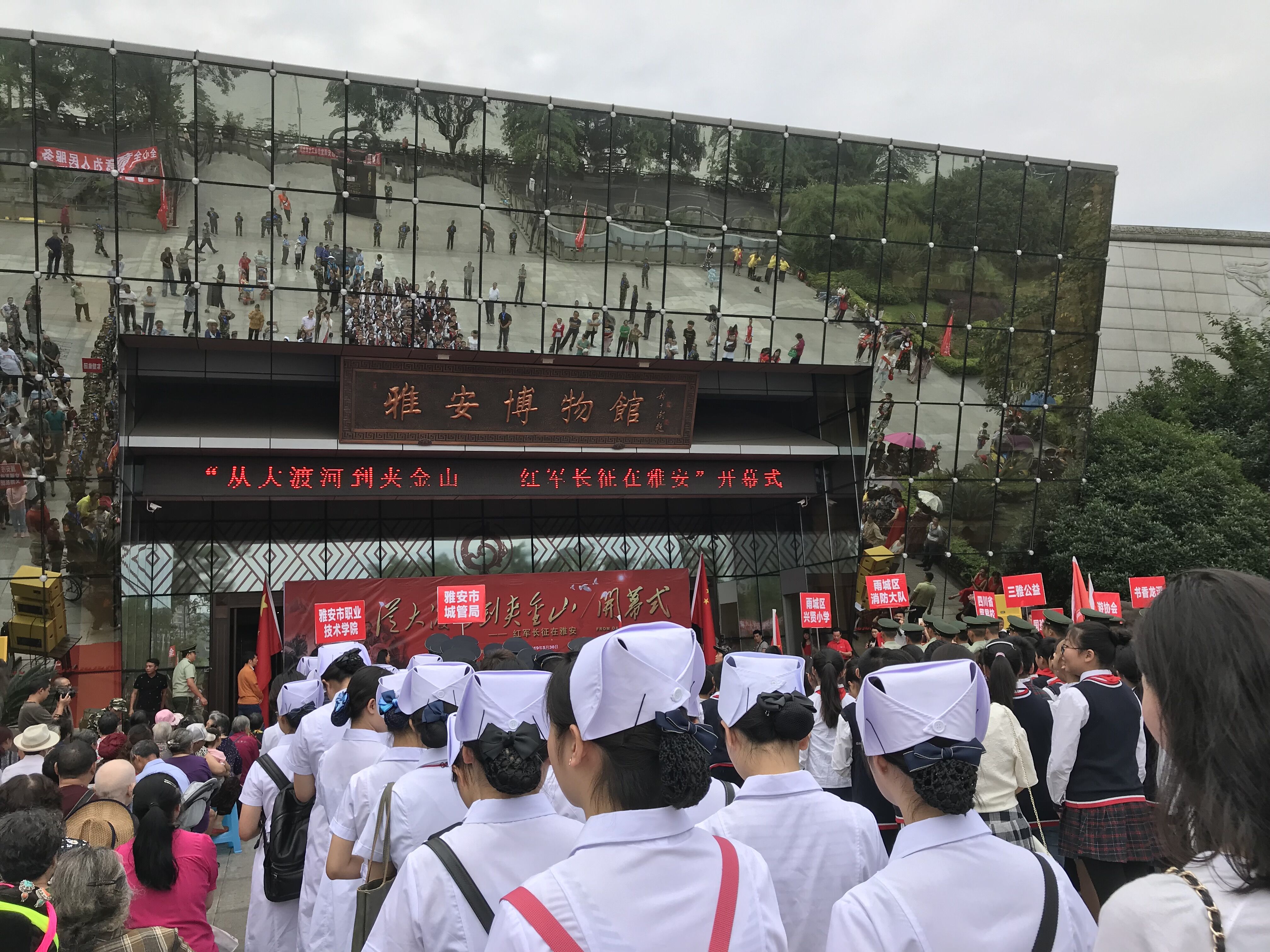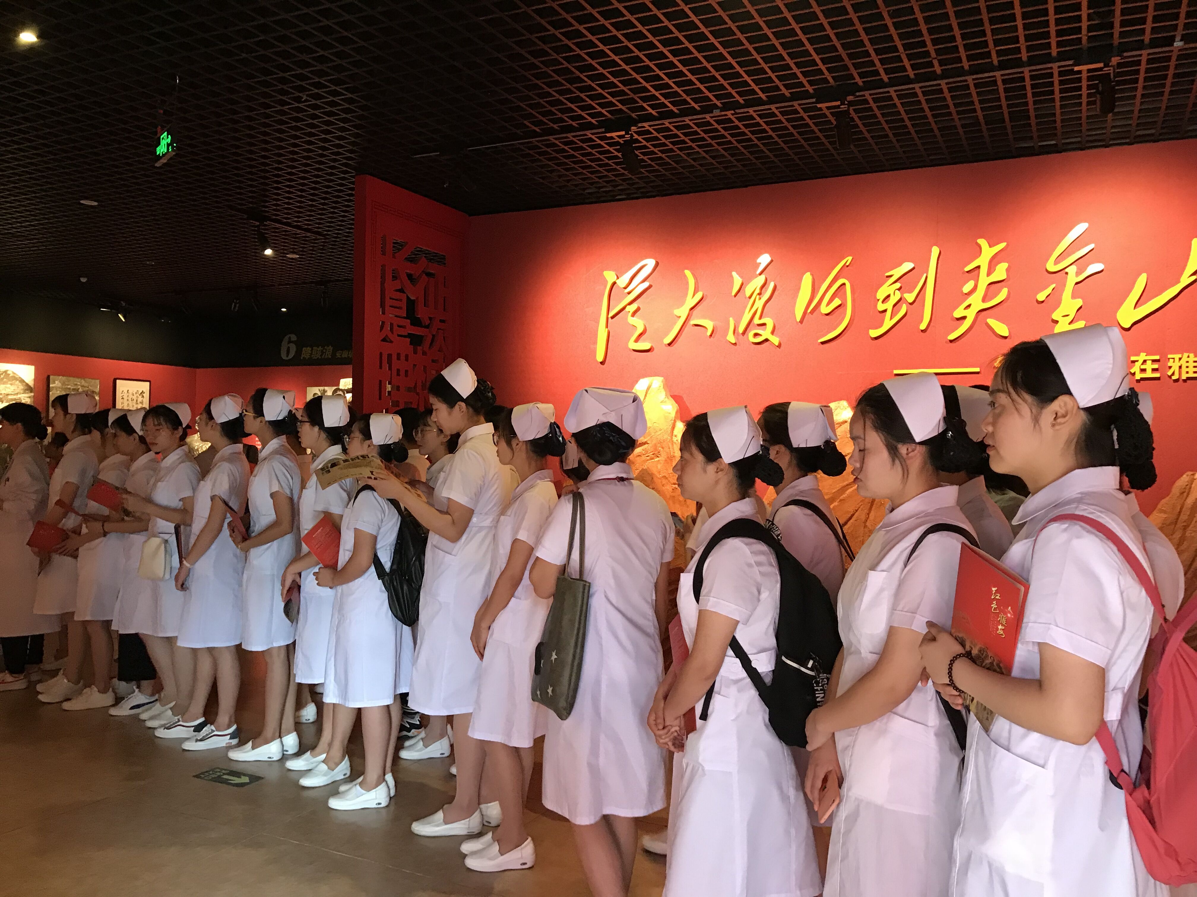 2018年5月25日恰逢中央红军强渡大渡河胜利83周年,雅安市文物局在雅安市博物馆举行了《从大渡河到夹金山——红军长征在雅安》展览开幕式。公司宣传部部长郭英才、思政部3名教师代表和护理系2017级护理专业的40名员工代表应邀参加了这次开幕式及展览活动。 展览开幕式于上午10:00 正式开始,主持人介绍参加开幕式的领导及嘉宾;雅安市博物馆馆长李炳中致辞;四川省文物局博物馆处处长李蓓宣布展览开展。随后,公司师生一行认真参观了展览。
