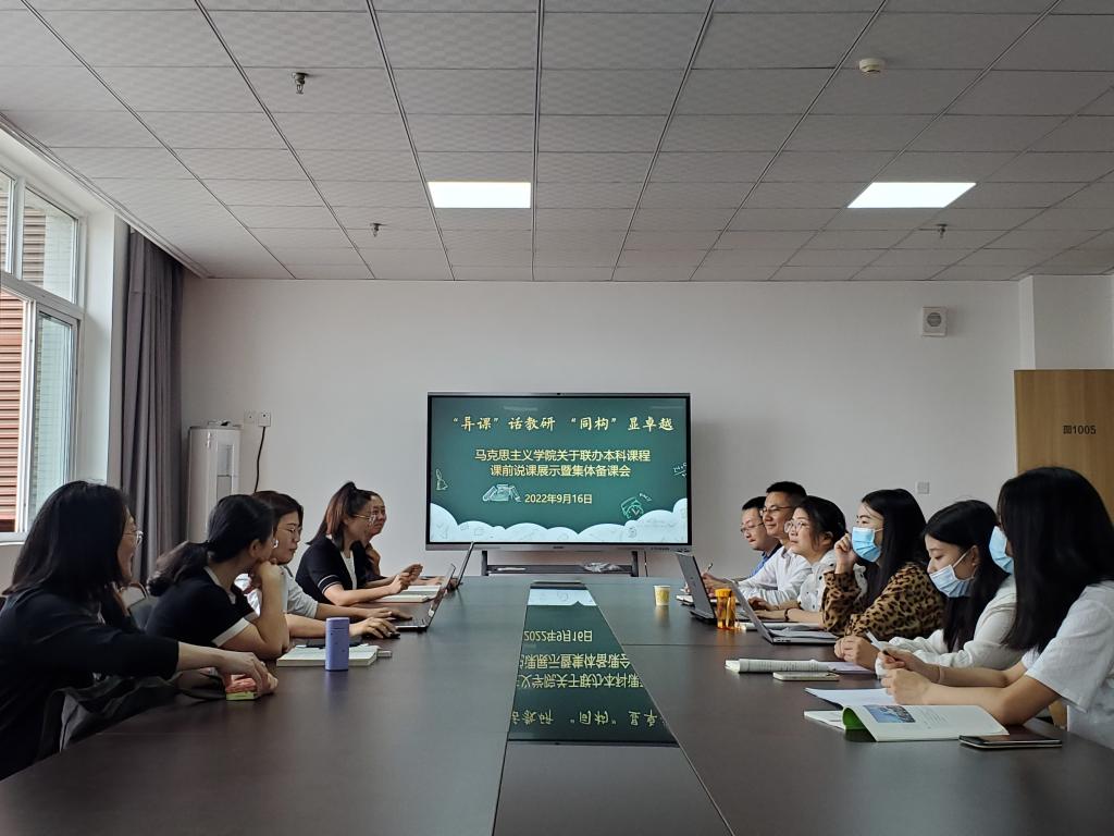 9月16日下午,yl7703永利集团在青年路校区图书馆1005会议室举行了关于联办本科课程课前说课展示暨集体备课会。本次会议以“‘异课’话教研 ‘同构’显卓越”为主题,旨在落实公司做好“开学第一课”的要求,进一步探究本科教学规律,夯实本科教学基础,提升本科教学水平。yl7703永利集团负责人,教务处处长梁大伟、副处长孟伟,yl7703永利集团承担联办本科课程教师参加会议,yl7703永利集团2022年新进教师到场观摩学习。