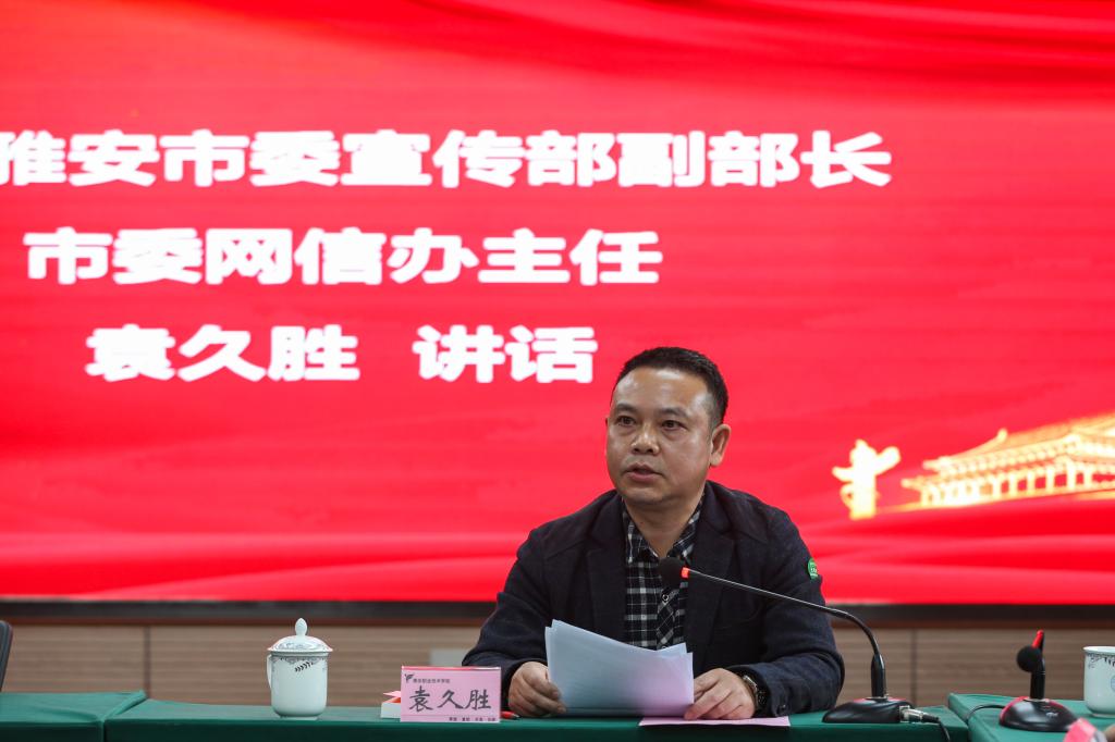 为深入贯彻落实习近平新时代中国特色社会主义思想和习近平总书记关于“大思政课”的重要指示批示精神,进一步推进我市大中小学思想政治教育一体化建设工作,11月14日下午,公司大中小学思政课一体化研究中心(后文简称“研究中心”)成立大会在青年路校区举行。中共雅安市委宣传部副部长、市委网信办主任袁久胜,雅安市委教育工委委员,雅安市教育局党组成员、副局长杨松,公司党委副书记付洪涛,以及雅安市教育科学研究院基教所,雅安中学、雅安市雨城区实验小学、雅安市雨城区兴贤小学、雅安市雨城区四小、雅安市外国语实验小学等成员单位的领导与教师代表,公司相关部门负责人、yl7703永利集团教师代表参加成立大会。yl7703永利集团直属党支部书记、经理郭英才主持会议。