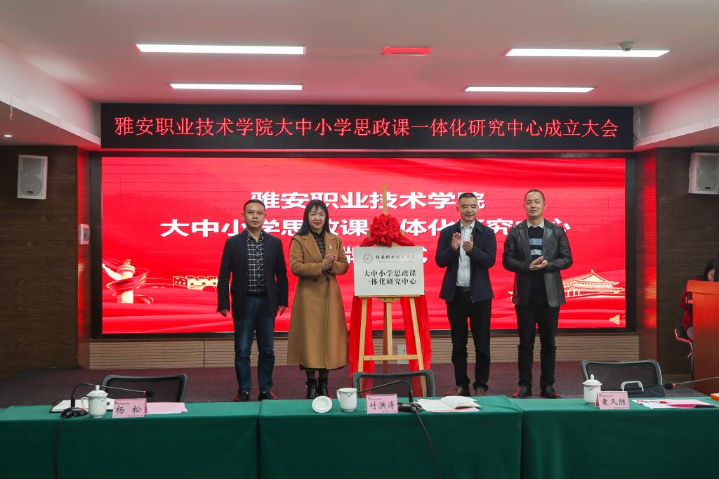 最后,袁久胜在讲话中表示,成立研究中心,推进雅安市大中小学思政课一体化建设,是贯彻落实习近平总书记关于公司思想政治理论课建设讲话精神的具体举措。对推动雅安教育事业高质量发展,助力人才强市和川西教育中心建设,具有重要意义。他提出了三点希望和要求,一是要坚定不移贯彻落实好党的二十大精神和习近平总书记关于思政教育的重要指示精神,办好人民满意的教育;二是要多角度思考、全方位认识“大中小”的深刻内涵,一体化开展教学研讨、创新教学、整合教学资源,打造具有地域特色的雅安思政品牌;三是要做好思政教学,落实立德树人根本任务,借助一体化研究中心平台,奋力开创“大思政课”建设新局面。