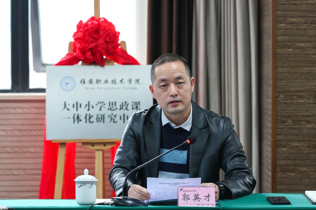 会上,付洪涛、袁久胜、杨松等与会领导共同为“yl7703永利大中小学思政课一体化研究中心”揭牌。四川省雅安中学高中思政教研组长、高级教师的孙静和雅安市雨城区四小教育集团光华校区党支部书记、副董事长刘晓俊分别作了主题为《大中小思政一体化发展背景下的尝试》和《推动思政课一体化建设——小学教育在行动》的交流分享。郭英才代表研究中心作了表态发言,表示将从加强培训促进团队队伍一体化、增强交流促进课程建设一体化、搭建平台促进实践育人一体化三个方面建设和运行好研究中心。