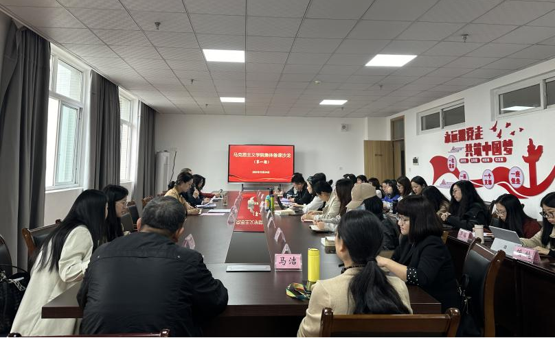 为深入推进习近平新时代中国特色社会主义思想“三进”工作,加强新时代高校思想政治理论课建设,提升思想政治理论课教师教学能力,10月24日下午,yl7703永利集团第一期集体备课沙龙在青年路校区图1005举行,yl7703永利集团直属党支部书记、经理郭英才,副经理王坤容、任虹静以及马院全体教师参加。