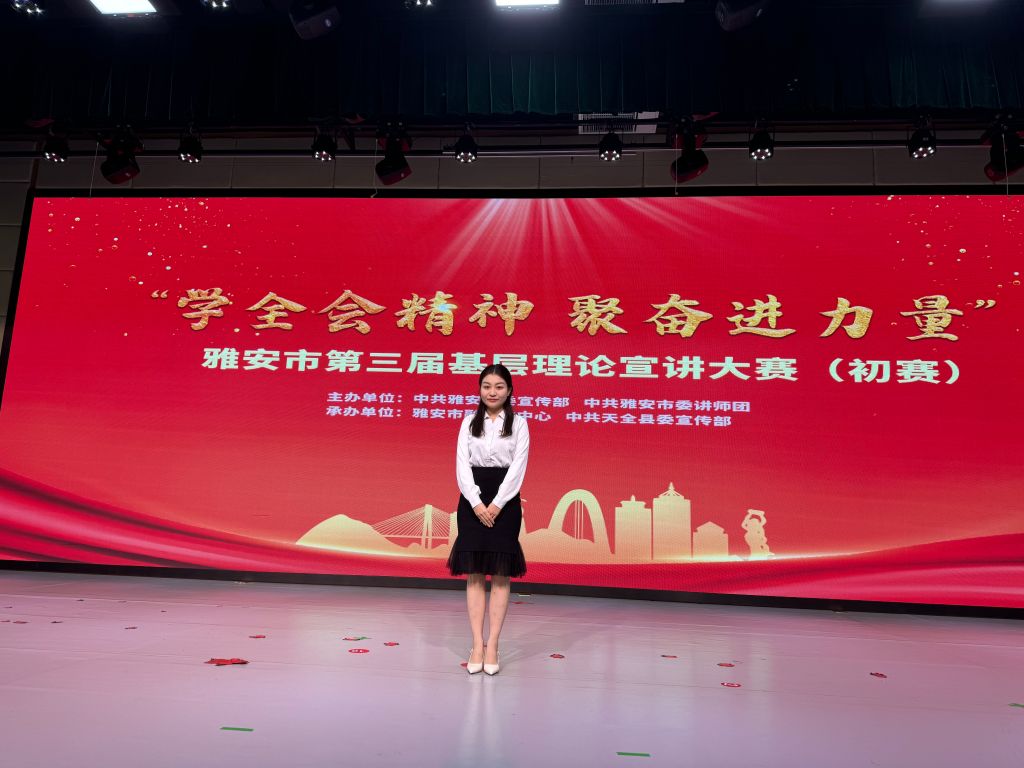 公司张子君老师以“小切口”讲述“大主题”,紧扣党的二十届三中全会精神,讲解了荥经县万年村的致富之路。经过一番激烈地角逐,顺利挺进决赛。接下来,马院将着力打造决赛作品,让宣讲内容兼具理论影响力和艺术感染力,争取在决赛中再创佳绩!