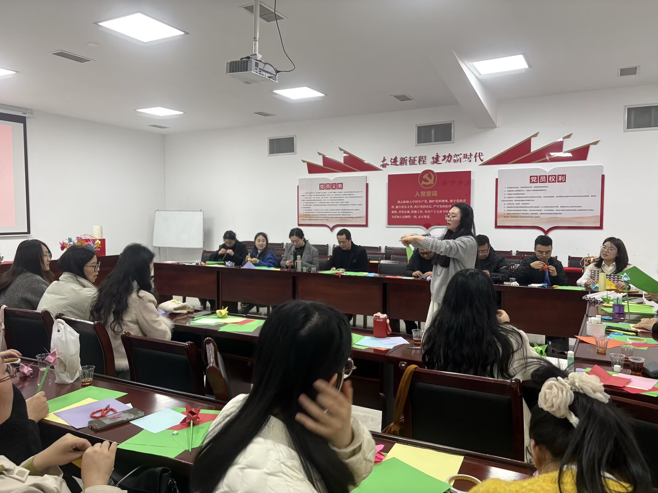 随后,折纸花艺创作环节有条不紊地开展,大家欢聚一堂,彼此协作、用心学习。从纸张的搭配与设计、到花朵的折叠与组装,每一步都充满创意与乐趣。老师们充分发挥想象力,将普通的纸张变成了一件件精美的艺术品。活动现场气氛热烈,欢声笑语不断,每个人都在创作中感受到手工艺术的魅力和团队合作的温暖。
