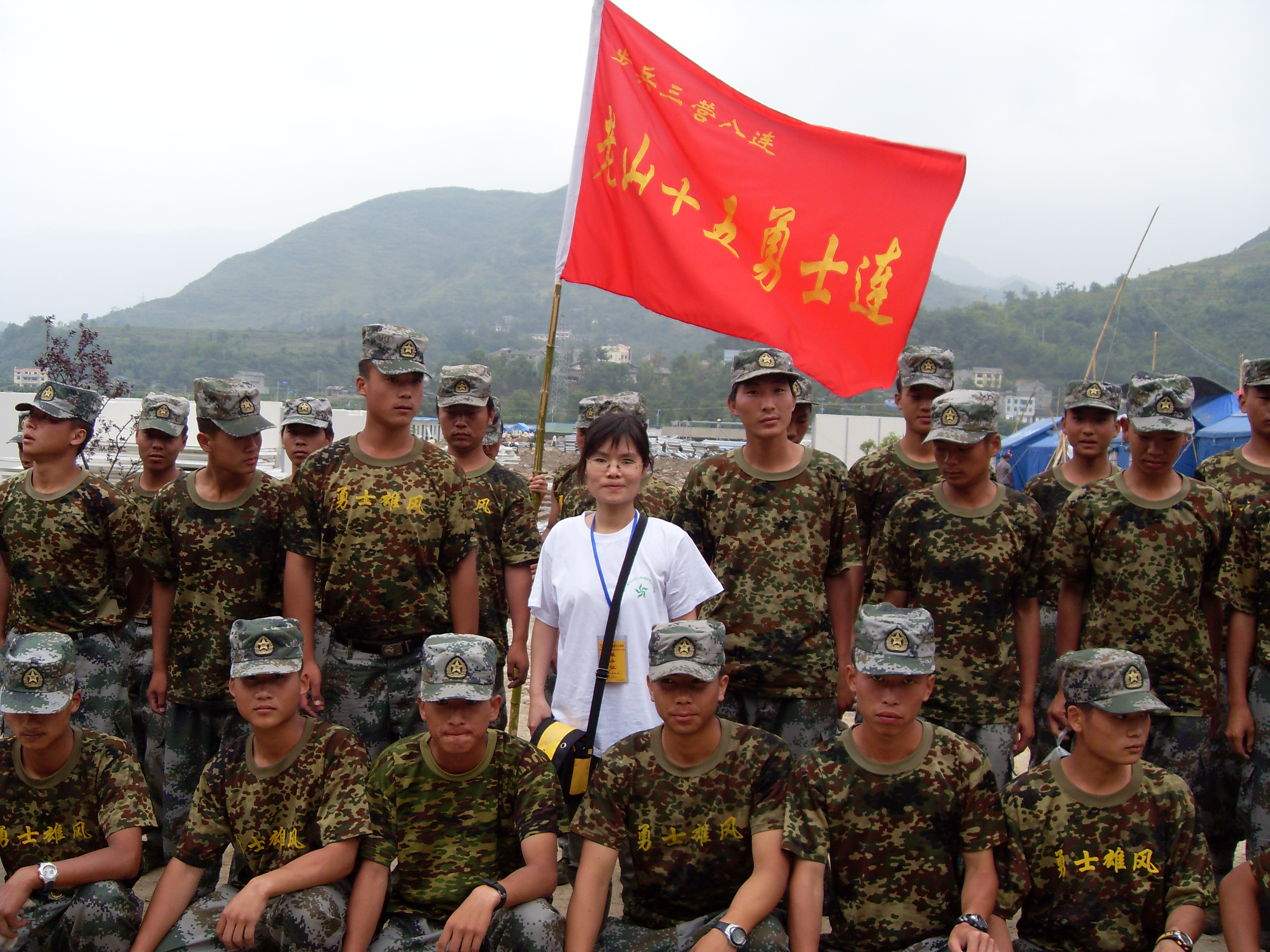 与参与救援的空降兵及其援助的爱心公司师生在一起