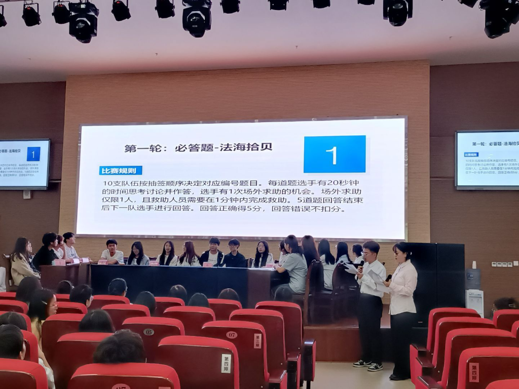 活动伊始,主持人对到场的老师、员工表示热烈欢迎,介绍了竞赛内容、规则和流程,随后20名参赛选手摩拳擦掌,经过必答题-法海拾贝、抢答题-法速先锋、风险题-法途险峰三轮激烈角逐,选手们凭借扎实的知识储备和敏捷的思维,展现了出色的法律素养。最终评选出一等奖1名、二等奖2名、三等奖3名,优秀奖4名,表彰选手们的出色表现。