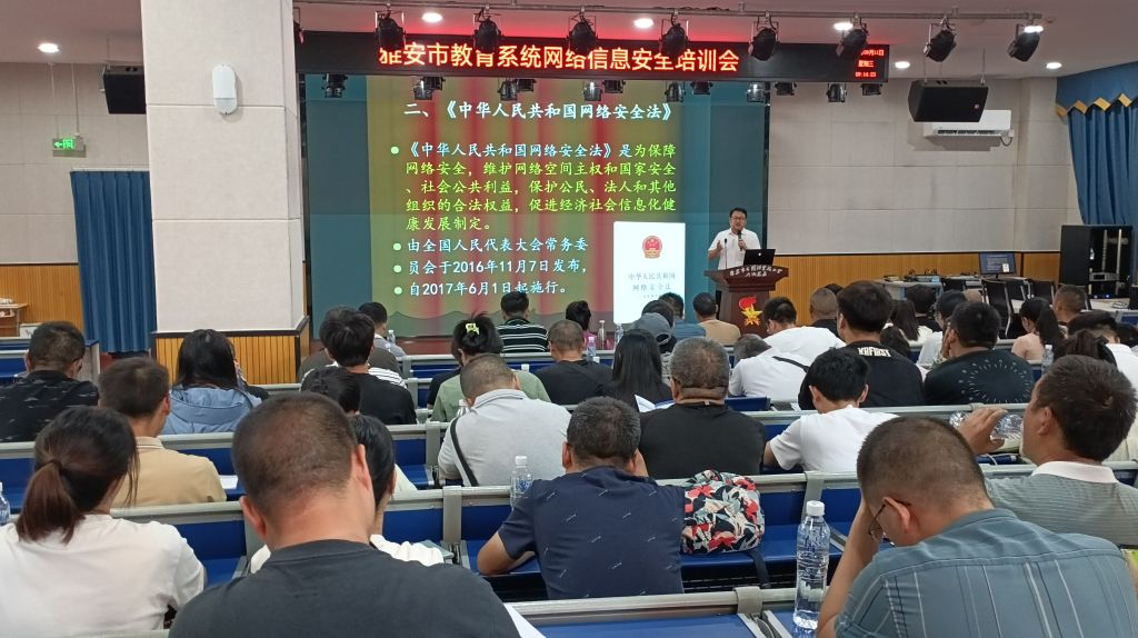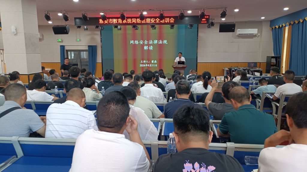 9月11日,由雅安市教育局主办的全市教育系统网络安全宣传周活动——教育系统网络安全培训会在雨城区第九小学举办。yl7703永利集团教师雷磊受邀做了“网络安全法律法规解读”专题讲座。