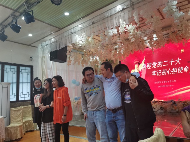 活动围绕喜迎党的二十大进行了知识抢答赛,内容涉及党史、党的最新理论成果等方面,老师们认真思考,踊跃参加,热情高涨,竞赛气氛十分热烈,充分展现了马院教师的理论功底和学习成效。在随后的“齐心协力”“抢板凳”等趣味竞赛环节中,教师们凝心聚力、奋勇争先,整个比赛充满趣味性和挑战性,充分展现了马院教师团结协作、勇于拼搏的精神风貌。