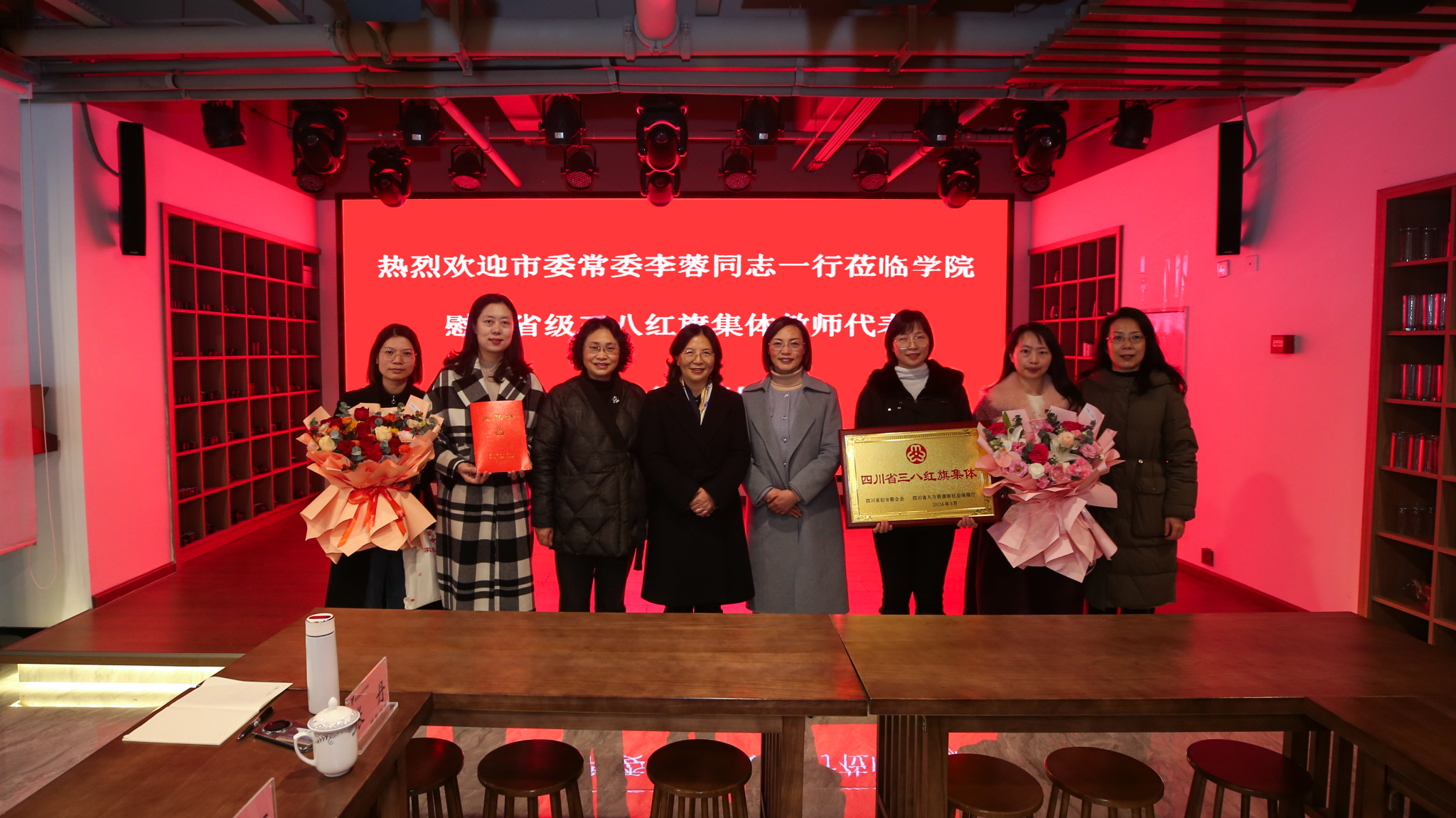李蓉向公司荣获四川省“三八红旗集体”称号的yl7703永利集团授牌,向女教师代表送上鲜花、慰问品,对获奖集体表示祝贺。在听取了yl7703永利集团负责人简短介绍后,她对该院取得的成绩给予高度肯定,并勉励在场教师要珍惜荣誉,立足本职岗位,自觉肩负使命,发扬“三八红旗集体”的示范引领作用,充分发挥yl7703永利集团在党的创新理论研究、阐释、宣讲等方面的优势,坚守立德树人的根本任务,帮助青年学子扣好人生第一粒扣子,勇攀学术高峰,深化社会影响,在培根铸魂育新人上多做贡献、再创佳绩。