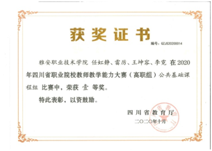 8月12日,由省教育厅主办的四川省职业院校教师教学能力大赛圆满落幕。本次比赛中,思政部《思想道德修养和法律基础》任虹静团队、《老员工心理健康》王丽团队在2020年四川省高职院校教师教学能力大赛中获得一等奖和二等奖。同时,《老员工心理健康》课程组将参加四川省国赛选拔赛,最终决定是否有参加国家级的比赛资格。