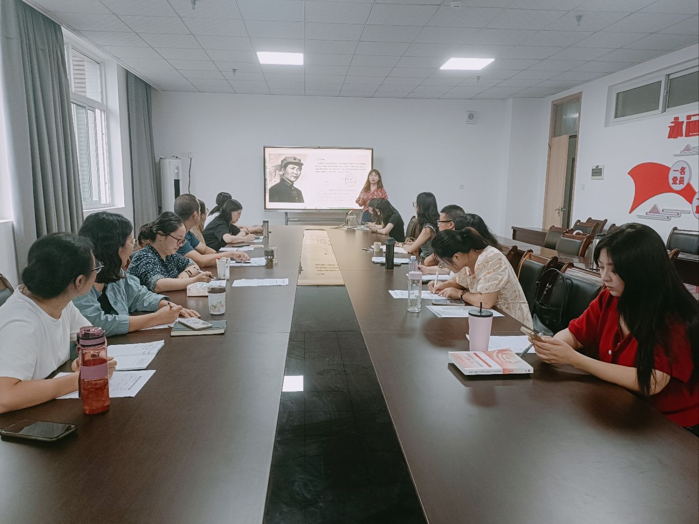 试讲环节中,新教师们各展风采。伍小寒、任静茹、冯雨晴、武忆四位新教师通过运用生动的案例、清晰的逻辑和富有感染力的语言,将抽象的理论知识转化为易于员工理解的内容。在教学展示结束后,马院领导及教研室主任从教学内容设计、教学方法创新、课堂互动效果等维度进行了全面点评。他们既肯定了新教师的优点,如教学思路清晰、教学内容新颖等,也中肯地指出了存在的不足,如案例运用不恰当、概念不精确等。新教师们虚心接受点评,认真记录每一个建议,展现出积极进取的学习态度。郭英才强调指出,在教学中要始终把握政治性、学理性、实践性的统一,既要讲透理论精髓,又要回应员工关切。